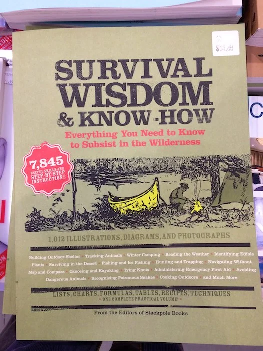 Costco has an oversized book for sale called Survival Wisdom & Knowhow: Everything you need to know to subsist in the wilderness for $14.39. This no-frills book offers 7,845 skills and step-by-step instructions including many camping tips.